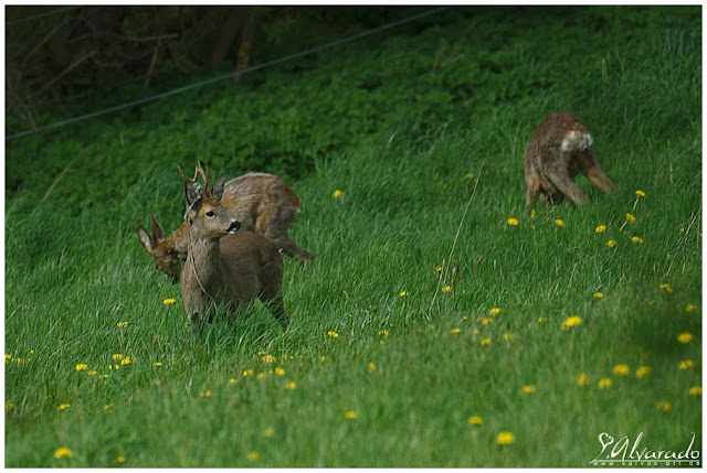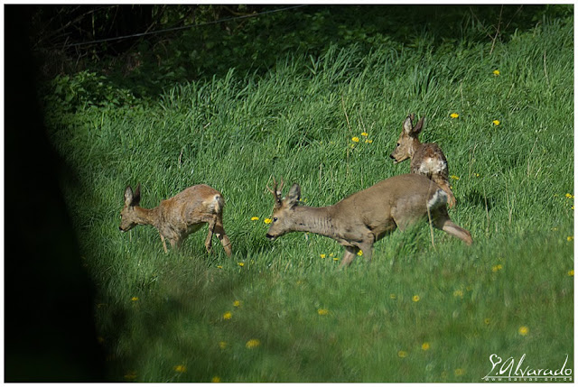 Auch wenn Rehe von Ricken (Weibliches Reh) geführt und geleitet werden, sind die Böcke wesentlich aufmerksamer und wachsamer ... das habt ihr vielleicht aus anderen Blog-Einträgen auch schon mitbekommen. Deswegen konzentriere ich mich beim Fotografieren bevorzugt auf die Böcke. Zumal kann man Anhand des Geweihs die Rehe besser einer Gruppe zuordnen ...
