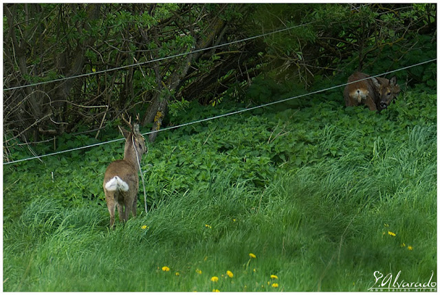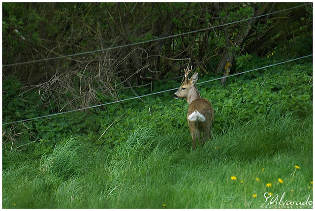 Am Sonntag - also  10.05.2015 - hatte ich mir, in Begleitung, vorgenommen noch mal Ausschau nach dem Bock zu halten. Da ich natürlich nicht weiß, wie lange er schon den Zaun an seinem Geweih hatte, wollte ich nach den vergangen Tagen überprüfen wie gut er mit der Situation zurecht kommt. Wie hat sich der Zaun weiter gewickelt ... konnte er oder die Anderen evtl. sogar den Zaun abbeißen?! Irgendwas musste ich aktiv machen. Gemeldet hatte ich den Vorfall ja schon.