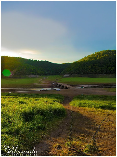 Ebenfalls habe ich bei Gesprächen mit einigen Fotofreunden, die sehr gerne und oft am Edersee fotografieren, erfahren, dass weitere Ruinen die man aktuell bei Niedrigwasser sehen kann nicht mehr so sind, wie sie mal waren und hier und da restauriert wurde bzw. Mauer wieder liebevoll hochgezogen wurden ... Weswegen ich im nachhinein doch erfreuter darüber bin, dass ich so viele Fotos der "unspektakulären" Straße (siehe Teil I) gemacht habe, da wahrscheinlich die Straße das einzige ist, was noch im Original Zustand ist ...