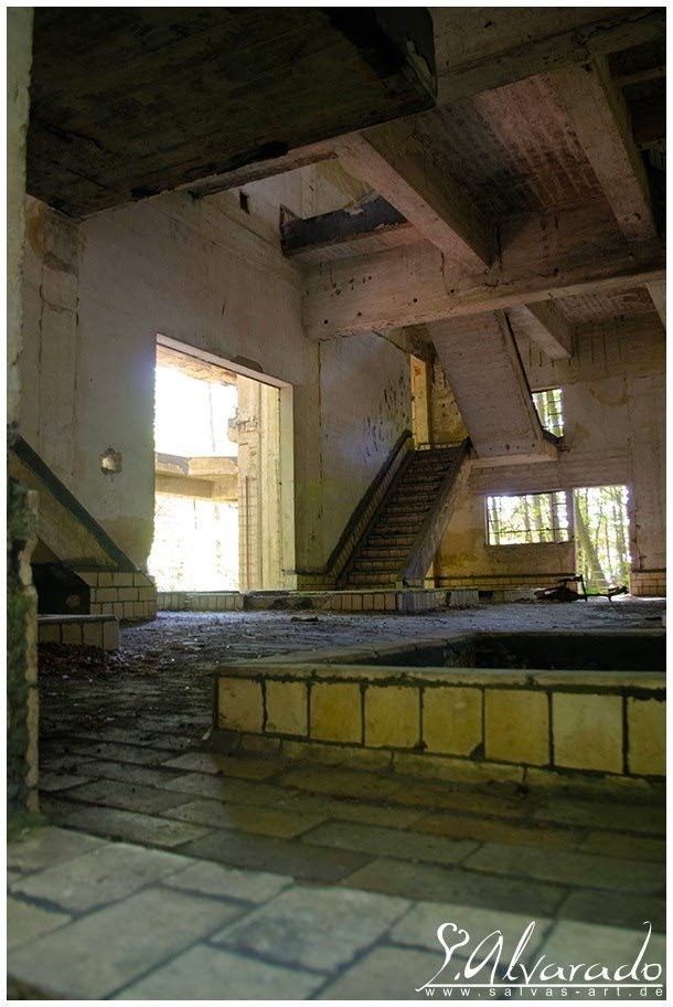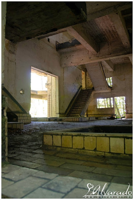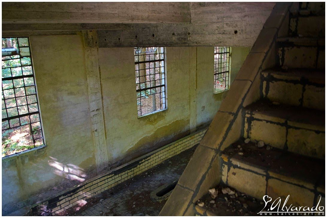 Ich wollte unbedingt den gesamten Raum zeigen ... dafür musste ich eine Treppe hochsteigen die natürlich, wie alle anderen Treppen auch, kein Geländer mehr hatte und ein Griff danach ins Nichts führte. In dem Foto unten könnt ihr das sehen ... auch das große Loch ;-)