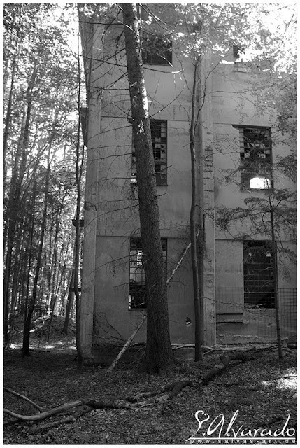 Von der oberen Etage des Gebäudes konnte schon der nächste Zielort gesehen werden und auf dem Weg dorthin konnte ich dann doch ein Foto vom gesamten Gebäude machen ... Einige Meter weiter im Wald ist das Gebäude tatsächlich nicht mehr zu sehen, so dicht wachsen die Bäume um das Gebäude wodurch wirklich eine unheimliche Atmosphäre entsteht ...