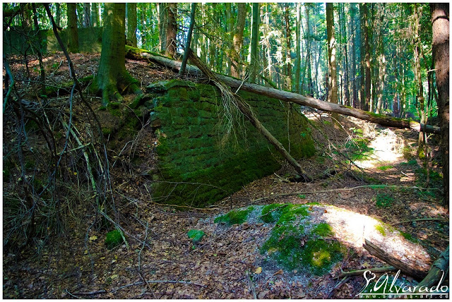 Im Wald konnte man einige Ruinen schon von weiten sehen, wobei es ab einer bestimmten Entfernung nicht immer ersichtlich war, wie groß die Ruine und das ehemalige Gebäude war. Die Dächer oder das was davon übrig war waren stark bemoost und mit Stöcken und Laub übersehen.