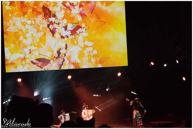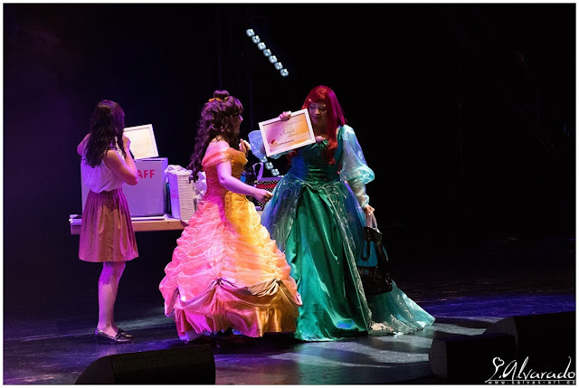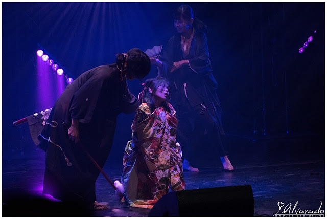 Der Saal wurde etwas abgedunkelt und man sah auf der Leinwand auf der Bühne einige AMV (Anime Video Clips zu "bekannten" Liedern). Das hatte uns die Dame, die ich gefragt hatte was dort stattfinden würde auch gesagt, allerdings konnte ich mit der Abkürzung nichts anfangen die sie mir genannt hatte und so war ich doch sehr überrascht. Mein Mann dagegen wusste was auf uns zu kam ... er wusste generell wohl mehr als ich, aber dazu werde ich mich später noch mal äußern ;-)