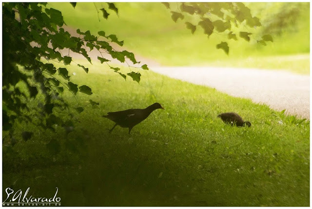 Ihr wisst ja, die Teichralle gilt als sehr, sehr, sehr, scheuer Vogel und wenn sie mit ihren Jungen auf Futtersuche sind, dann ist es fast unmöglich sich ihnen unbemerkt anzunähern, sie reagieren auf Geräusche noch empfindlicher ... Daher sind mit diesen Fotos für mich auch sehr besonders, auch wenn sie vielleicht nicht so qualitativ geworden sind, aber es war einfach eine enorme Geduld die ich dafür aufbringen musste ...