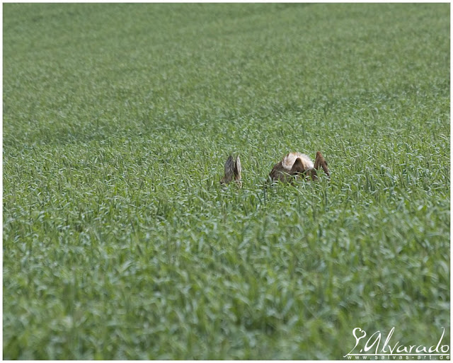 Wir blieben noch eine Weile sitzen und schauten uns um ... von beiden war weiterhin nichts zu sehen, aber wir nahmen leise Geräusche war ... es schien nicht aus dem Getreidefeld zu kommen.
