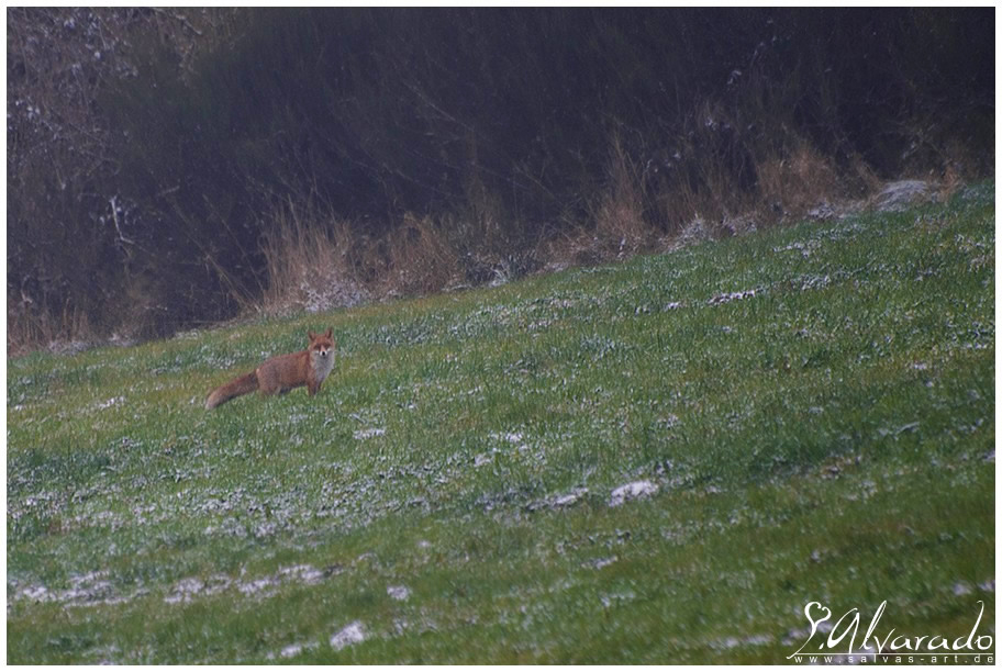 Dieses Verhalten finde ich doch sehr erstaunlich weswegen ich vermute, dass es noch ein junger neugieriger Fuchs oder evtl. sogar die Fähe die ich im Sommer fotografieren konnte ist.